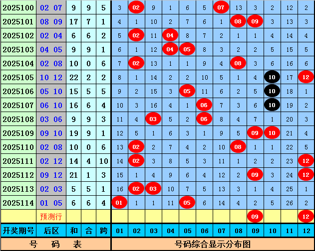 后区别析:上期后区开出两码01和05,分别遗漏了16期和7期,最近10期后区奖号大小个数比为10:10,奇偶个数比为7:13,本期后区刺眼号码03、05、09、10、12,精选两码09、12。