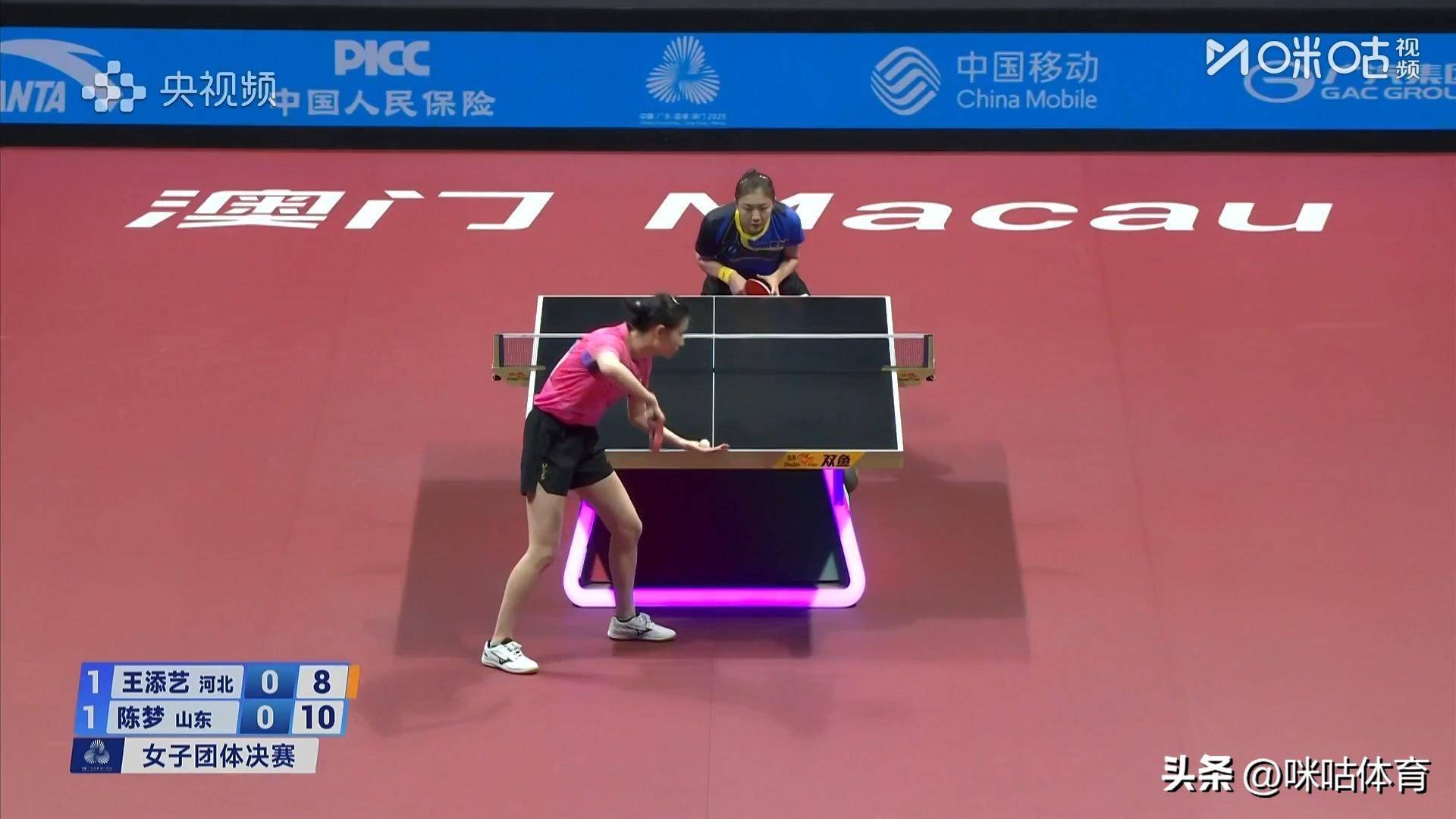 全场战罢,陈梦3比0治服王添艺(局分:11-8、11-7、11-6)山东队总比分2比1再次朝上河北女团!