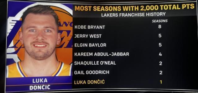 算上这场比赛的32分,东契奇赛季总得分2005分,是湖东谈主队史第七位单赛季得分打破2000分的球员。